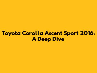Is the 2016 Toyota Corolla Ascent Sport a Good Choice?