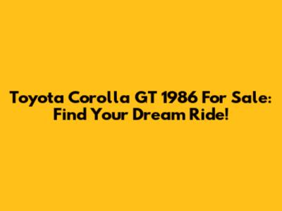 Toyota Corolla GT 1986: Find Yours Today!