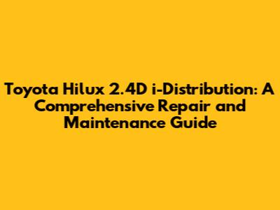 Toyota Hilux 2.4D I-Distribution: Repair & Maintenance Guide