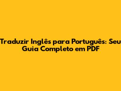 Traduzir Inglês Para Português: Seu Guia Completo Em PDF
