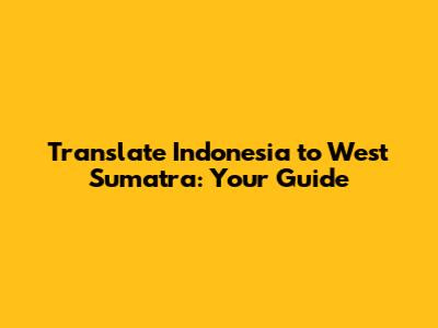 Translate Indonesia To West Sumatra: Your Guide