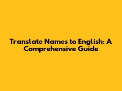 Translate Names To English: A Comprehensive Guide