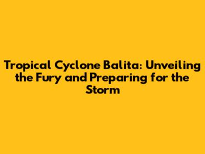Tropical Cyclone Balita: Formation, Impact, And Preparedness