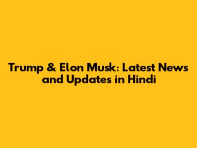 Trump & Elon Musk: Latest News And Updates In Hindi