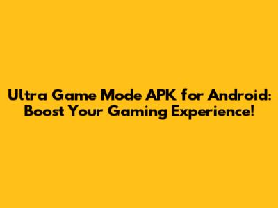 Ultra Game Mode APK: Boost Your Android Gaming!