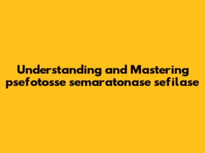 Understanding And Mastering Psefotosse Semaratonase Sefilase