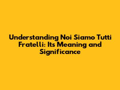 Understanding 'Noi Siamo Tutti Fratelli': Its Meaning And Significance