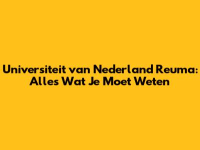 Universiteit Van Nederland Reuma: Alles Wat Je Moet Weten