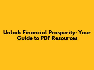 Unlock Financial Prosperity: Your Guide To PDF Resources