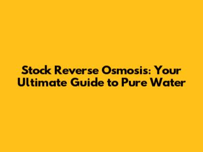 What is Stock Reverse Osmosis and How Does it Work?