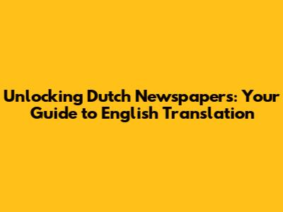 Unlocking Dutch Newspapers: Your Guide To English Translation