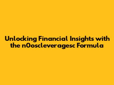 Unlocking Financial Insights With The N0oscleveragesc Formula