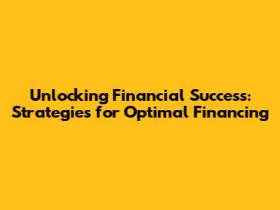 Unlocking Financial Success: Strategies For Optimal Financing