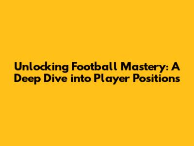 Unlocking Football Mastery: A Deep Dive Into Player Positions