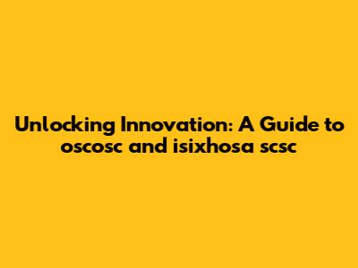 Unlocking Innovation: A Guide To Oscosc And Isixhosa Scsc