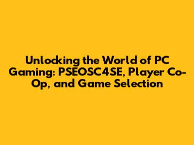 Unlocking PC Gaming: PSEOSC4SE, Player Co-Op, And More!