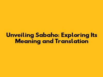 'Sabaho' Beyond Translation: Exploring Its Cultural Implications