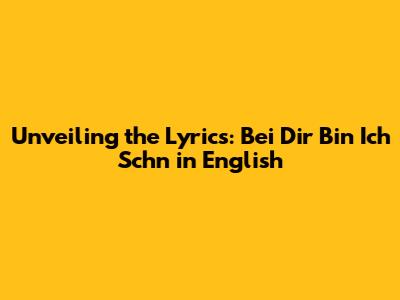 Unlocking The Meaning: Bei Dir Bin Ich Schn Lyrics In English