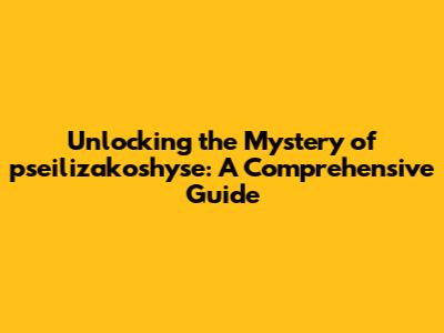 Unlocking The Mystery Of Pseilizakoshyse: A Comprehensive Guide