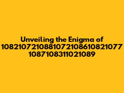 Hey everyone! Ever stumbled upon something mysterious, a sequence of numbers that just seems to whisper secrets? That's what we're diving into today with 1082107210881072108610821077 1087108311021089. It's a bit of a mouthful, right? But trust me, it's a fascinating journey into the unknown. Think of it like a treasure map – we're going to decode what this might represent, its potential significance, and how it might fit into a larger puzzle. This is all about 1082107210881072108610821077 1087108311021089, and we'll be exploring different angles, possibilities, and maybe even a few rabbit holes along the way.