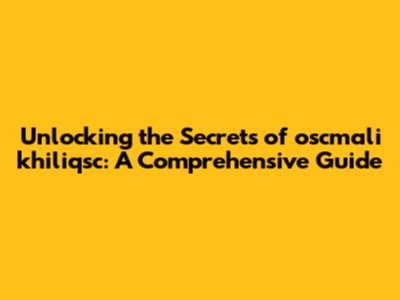 Unlocking The Secrets Of Oscmali Khiliqsc: A Comprehensive Guide