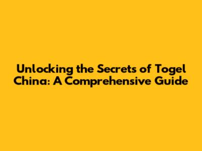 Unlocking The Secrets Of Togel China: A Comprehensive Guide