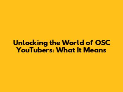 Unlocking The World Of OSC YouTubers: What It Means
