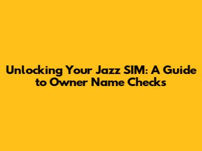 Unlocking Your Jazz SIM: A Guide To Owner Name Checks