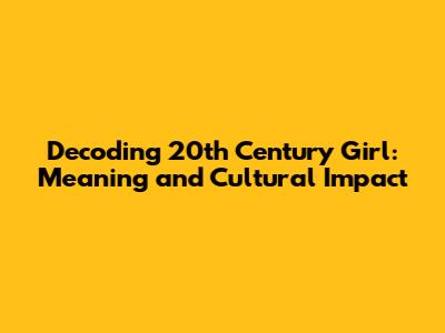Unpacking '20th Century Girl': Meaning & Impact
