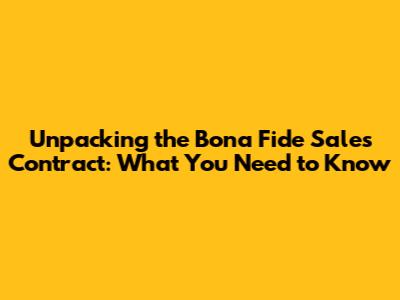 Unpacking The Bona Fide Sales Contract: What You Need To Know