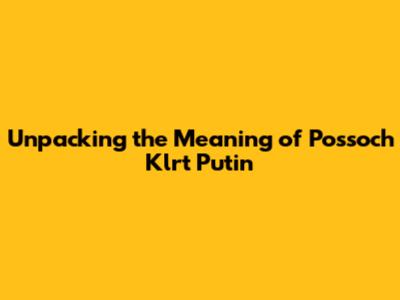 Hey guys! Let's dive into the intriguing phrase "Possoch Klrt Putin." If you're anything like me, you might have stumbled upon this and thought, "What in the world does that even mean?" Well, you're not alone! It's a phrase that has sparked curiosity, confusion, and a whole lot of questions. This article is all about unpacking the possible meanings, origins, and implications of this phrase. We'll explore the context, potential interpretations, and try to make sense of it all. So, grab a cup of coffee (or your beverage of choice), and let's get started on this linguistic adventure!