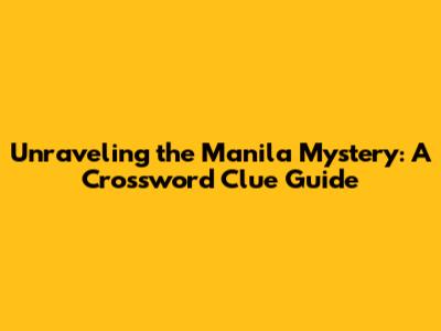 Unraveling The Manila Mystery: A Crossword Clue Guide