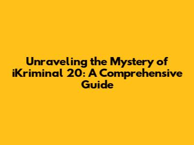 Unraveling The Mystery Of IKriminal 20: A Comprehensive Guide