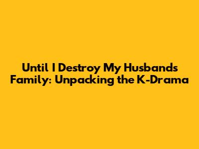 Hey guys! So, you've probably heard the buzz about the K-drama "Until I Destroy My Husband's Family," right? It's a title that definitely grabs your attention, and let me tell you, the story behind it is just as captivating. We're diving deep into this drama, exploring its themes, characters, and why it's become such a hot topic. If you're looking for a compelling narrative with plenty of twists and turns, you're in the right place. This drama isn't just about revenge; it's a complex exploration of societal pressures, family dynamics, and the lengths people will go to reclaim their lives. We'll be breaking down the plot, highlighting key moments, and discussing the performances that make this series a must-watch. Get ready, because we're about to unravel the mysteries and the emotional rollercoaster that is "Until I Destroy My Husband's Family." This drama really gets you thinking about loyalty, betrayal, and the true meaning of happiness. It's a story that resonates because it touches on universal themes, even within its specific cultural context. The way it portrays the struggles of its protagonist against overwhelming odds is truly inspiring, albeit in a very dramatic way. So, grab your snacks, settle in, and let's get started on this epic journey into the heart of this incredible K-drama. We'll make sure to cover all the juicy details you're eager to know, so stick around!