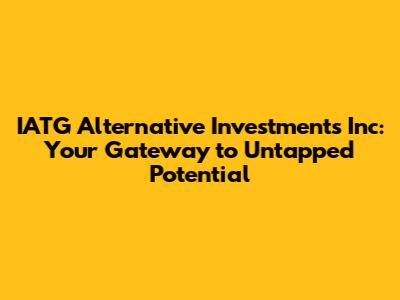 Hey there, finance enthusiasts! Ever heard of IATG Alternative Investments Inc? If you're looking to diversify your portfolio and explore investment avenues beyond the typical stocks and bonds, then you're in the right place. Today, we're diving deep into the world of alternative investments, with a special focus on IATG and what it has to offer. Buckle up, because we're about to embark on a journey that could reshape how you think about your financial future. This article serves as your comprehensive guide to understanding IATG, the alternative investment landscape, and how you can potentially benefit. So, grab your favorite beverage, get comfy, and let's get started. We'll cover everything from the basics of alternative investments to the specifics of IATG's strategies and offerings. Let’s get real – the financial world can seem like a maze, right? But with the right knowledge and a bit of guidance, you can navigate it with confidence. That's where we come in. We'll break down complex concepts into easy-to-understand terms, ensuring you're well-equipped to make informed decisions. We'll explore the advantages and potential drawbacks of alternative investments, empowering you to weigh the pros and cons based on your financial goals and risk tolerance. We'll also take a closer look at IATG, examining its investment approach, the types of assets it focuses on, and the potential returns it aims to generate. By the end of this article, you'll have a clear understanding of IATG and its role in the alternative investment space, enabling you to assess whether it aligns with your investment strategy. So, get ready to become an informed investor, and let's unlock the secrets of IATG Alternative Investments Inc together! This is your chance to expand your investment horizons and discover opportunities you might have missed before. We're here to help you every step of the way, providing insights and information that can make a real difference in your financial journey. So, let’s get this party started and explore the exciting world of alternative investments with IATG!