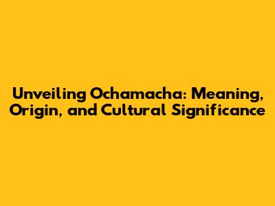 Unveiling Ochamacha: Meaning, Origin, And Cultural Significance