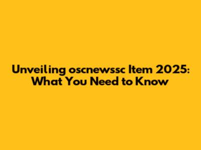 Unveiling Oscnewssc Item 2025: What You Need To Know