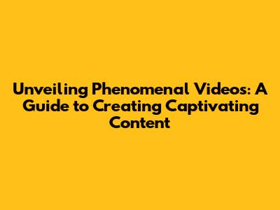 Unveiling Phenomenal Videos: A Guide To Creating Captivating Content