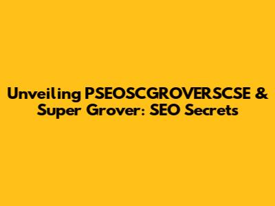 Unveiling PSEOSCGROVERSCSE & Super Grover: SEO Secrets