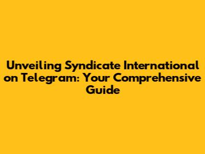Unveiling Syndicate International On Telegram: Your Comprehensive Guide