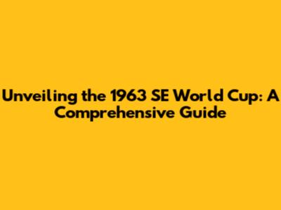 Unveiling The 1963 SE World Cup: A Comprehensive Guide