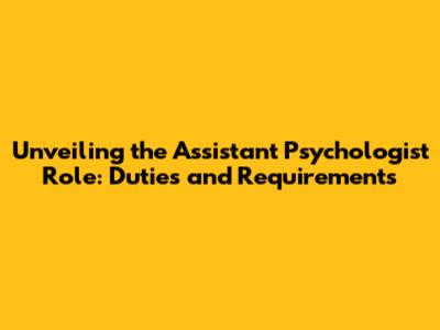 Unveiling The Assistant Psychologist Role: Duties And Requirements