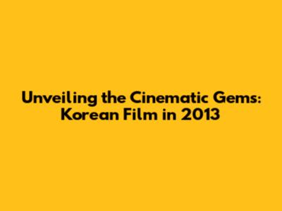 Unveiling The Cinematic Gems: Korean Film In 2013
