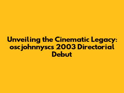 Unveiling The Cinematic Legacy: Oscjohnnysc's 2003 Directorial Debut