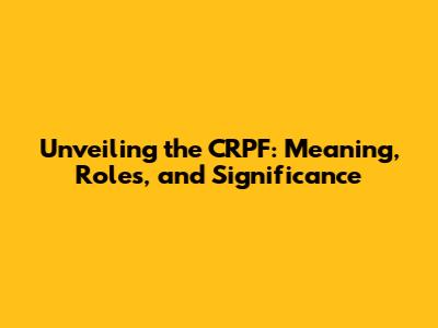 CRPF Meaning: Decoding the Acronym