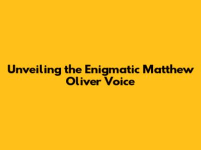 Unveiling The Enigmatic Matthew Oliver Voice