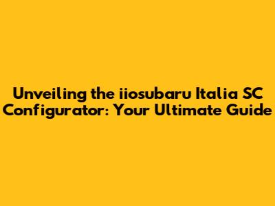 Unveiling The Iiosubaru Italia SC Configurator: Your Ultimate Guide