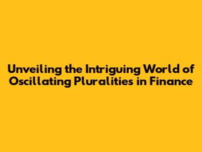 Unveiling The Intriguing World Of Oscillating Pluralities In Finance