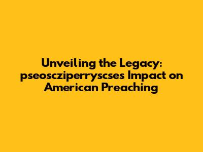 Unveiling The Legacy: Pseoscziperryscse's Impact On American Preaching