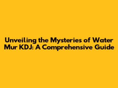 Unveiling The Mysteries Of Water Mur KDJ: A Comprehensive Guide